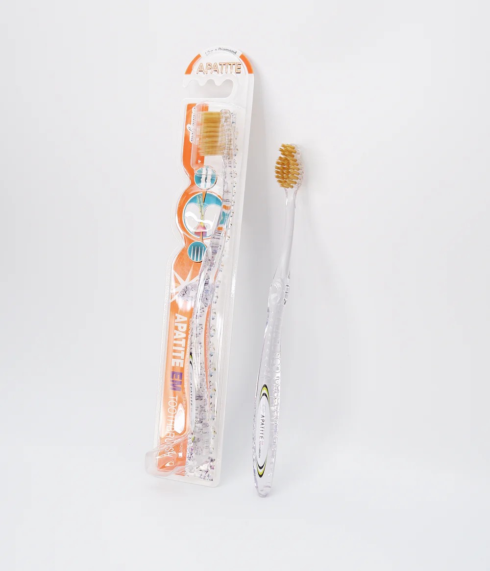 APATITE dantų šepetėlis su Nano aukso dalelėmis yra skirtas jautrioms ir kraujuojančioms dantenoms. Dantų šepetėlis APATITE reljefiniais šereliais yra naujo tipo gaminys, kuris visiškai skiriasi nuo įprastų dantų šepetėlių. Šepetėlių šerelių paviršiaus dalyje esantys mikro nelygumai, pašalina apnašas žymiai greičiau, nei tai gali padaryti kiti dantų šepetėliai. Dantų šepetėlio šereliai specialia technologija yra 300 kartų ištempti ir 1000 kartų susukti, taip sukuriant sraigto formos šerelius, kurie efektyviai surenka ant dantų esančius nešvarumus.