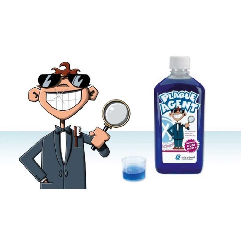 Miradent apnašų nustatymo skystis Plaque Agent kramtomosios gumos skonio, 250 ml. Burnos skalavimo skystis skirtas apnašų kontrolei. Tai puiki prevencinė priemonė efektyviam dantų valymui. Blogai nuvalytos arba nenuvalytos apnašos nusidažo alyvine spalva, ko pasekoje aiškiai matoma ar dantys valomi efektyviai.