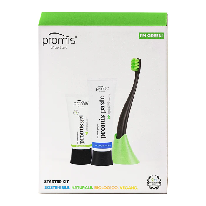 Visi rinkinyje esantys „Promis” produktai yra ekologiškos sudėties, o pakuotės pagamintos iš perdirbtų medžiagų. Tai kasdienis burnos priežiūros priemonių rinkinys, kuris padės apsisaugoti nuo apnašų susidarymo, užtikrins jūsų dantų ir dantenų sveikatą, pripildys dantis reikiamamomis medžiagomis. Tiek dantų pasta, tiek dantų gelis savo sudėtyje neturi kenksmingų medžiagų tokių, kaip: SLS, titano dioksidas, triklozanas, parabenai ar kiti dažikliai.